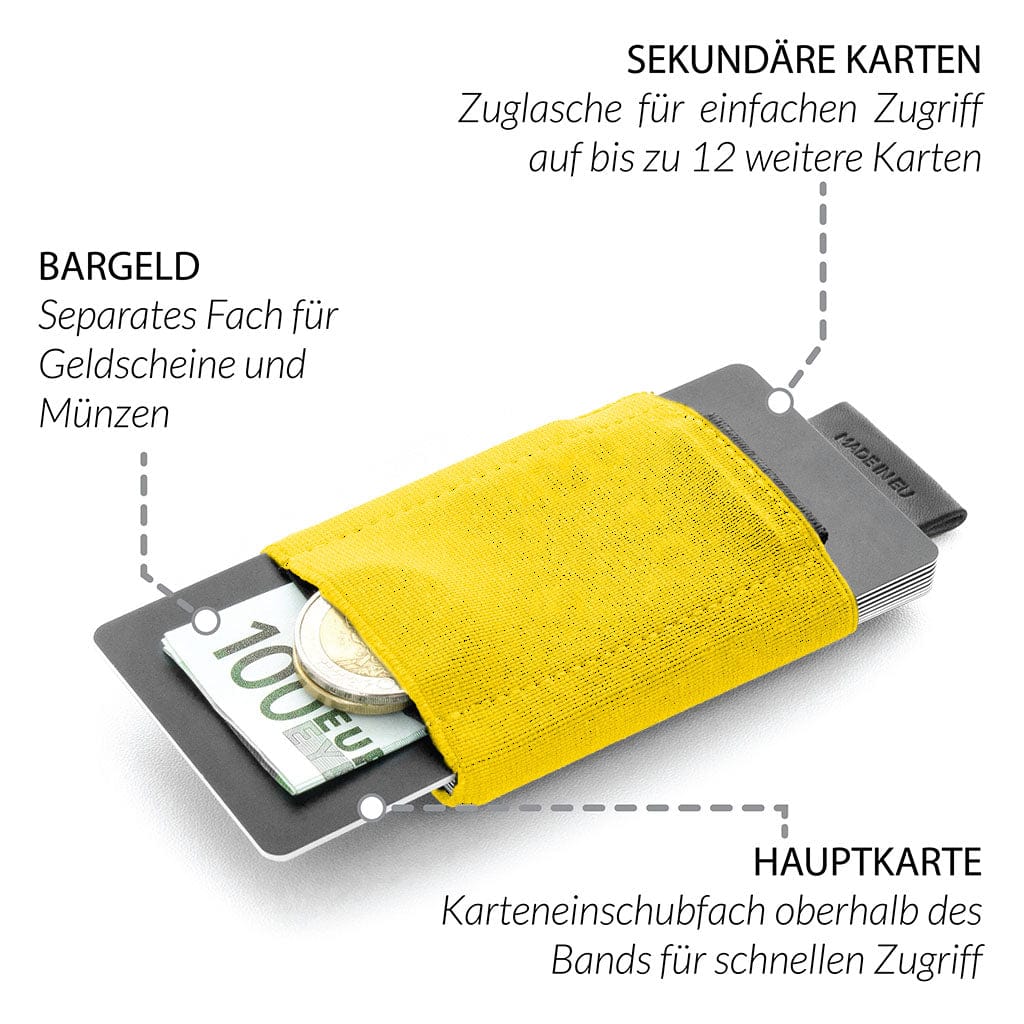 Die Nano Boy Serie bietet Platz für bis zu 13 Karten. Er verfügt über ein Hauptfach mit einem innovativen Zuglaschen-Mechanismus für bis zu 12 Karten und ein Fach für den direkten Zugriff auf die meistgenutzte bzw. die zwei meistgenutzten Karten.