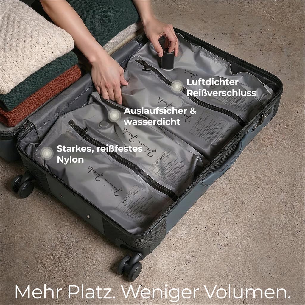 - Komprimiert deine Kleidung und schafft bis zu 3x mehr Platz in jeder Tasche oder jedem Koffer