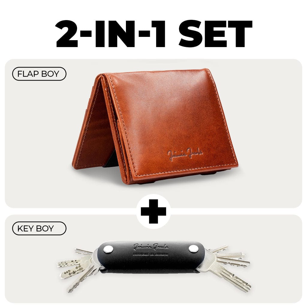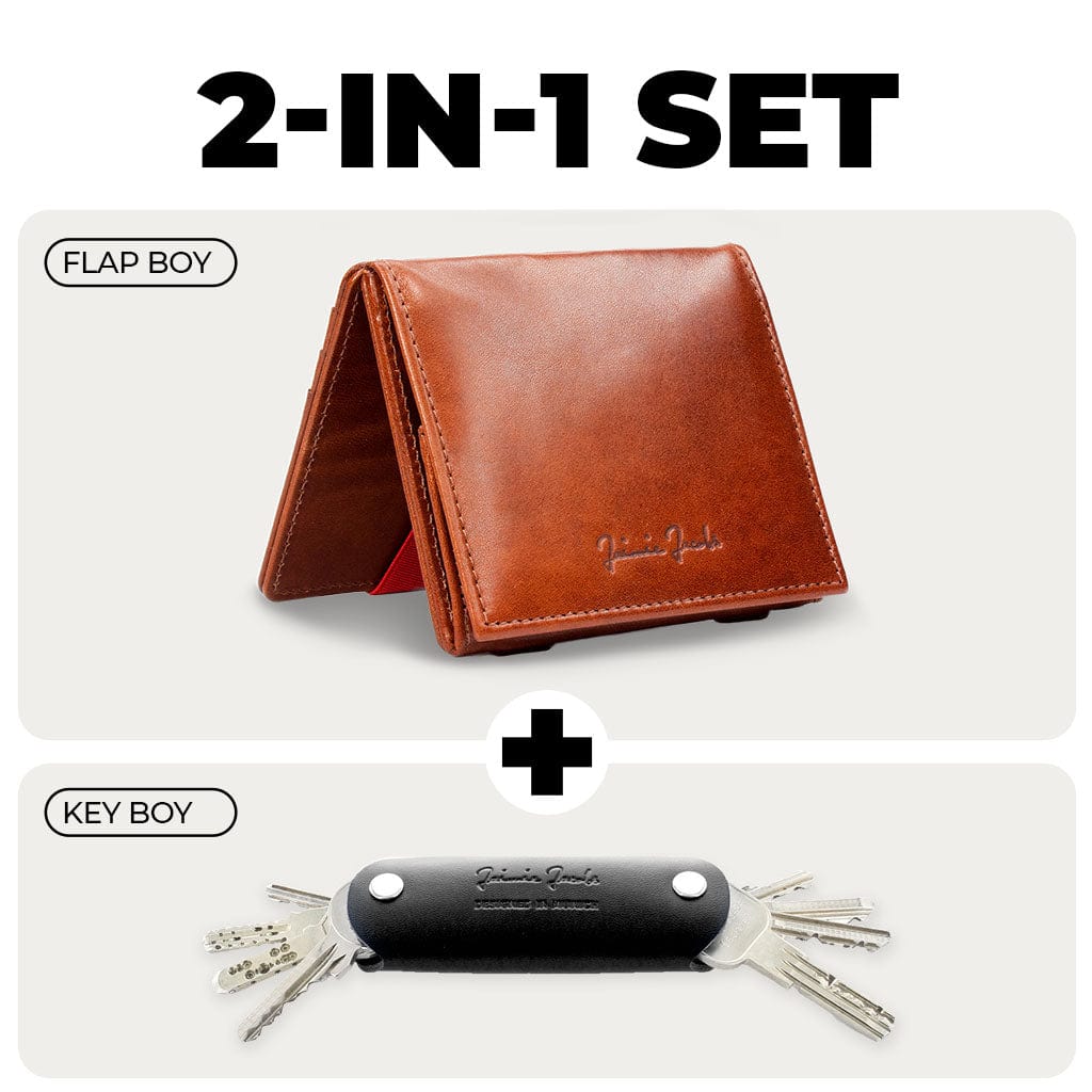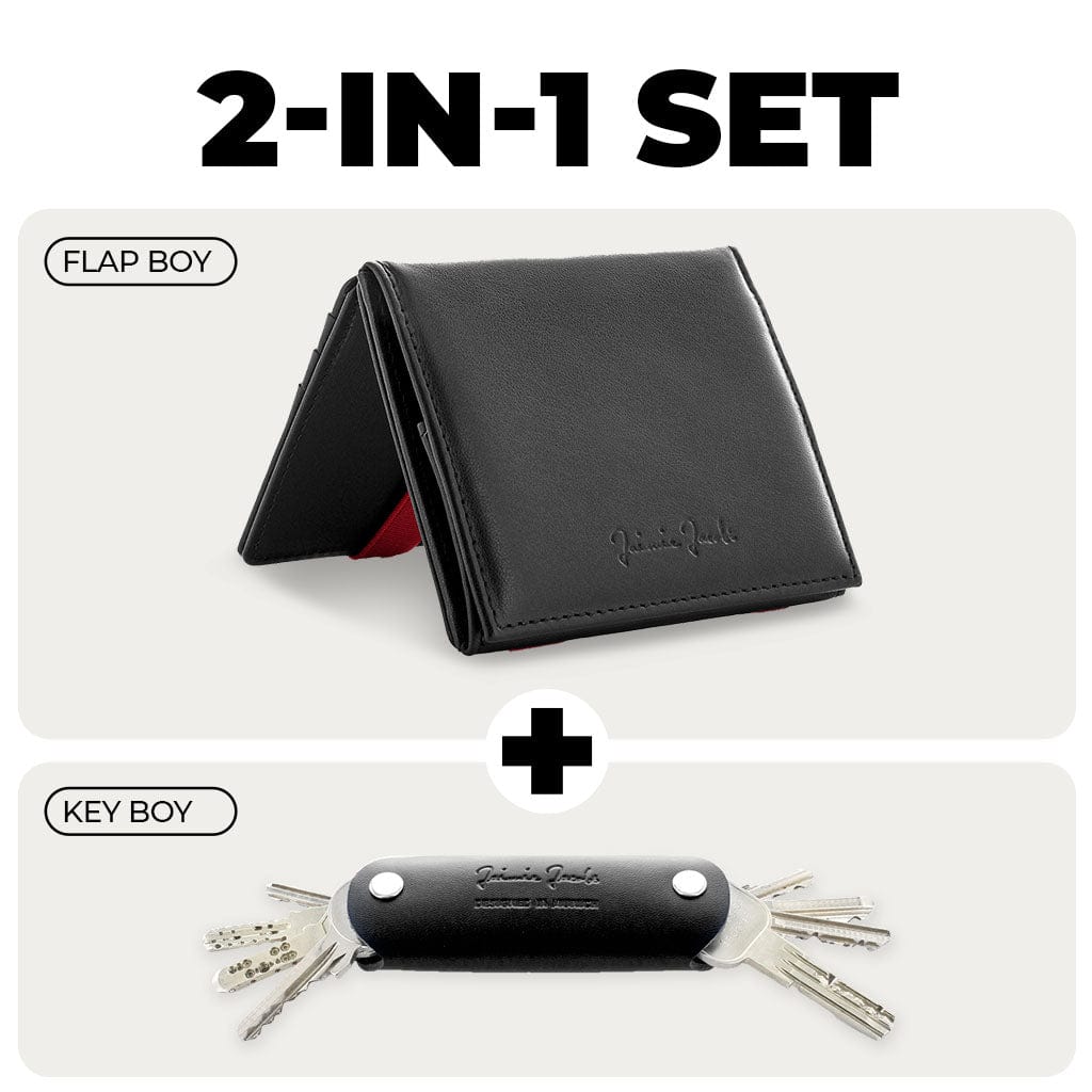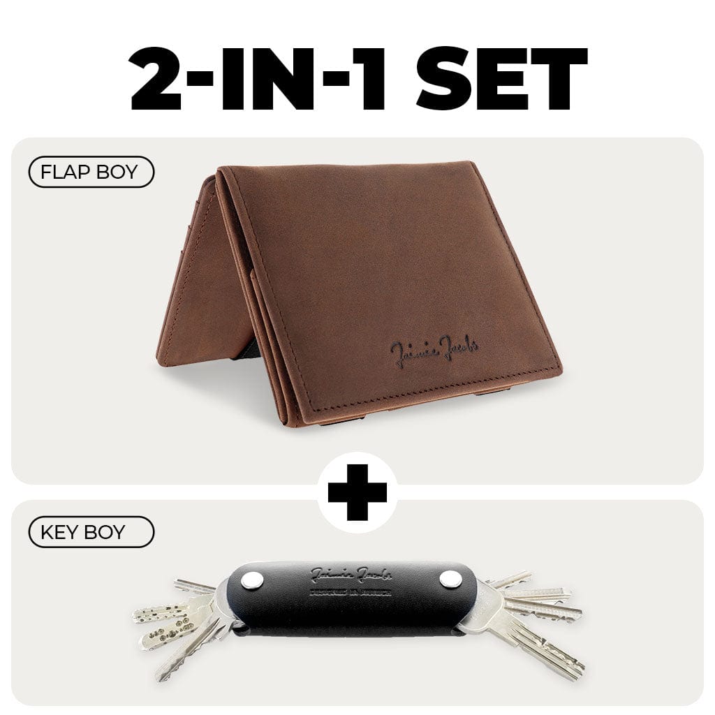 The Flap Boy has a large coin compartment. Therefore it is thicker than the Flap Boy Slim and has 3 credit card slots less. The Flap Boy Slim has no coin compartment. Otherwise, both models are identical. The Flap Boy XL has the same large coin compartment as the Flap Boy but offers an additional card compartment with a pull tab for 6 cards. In addition, the card slots of the Flap Boy XL are all inside the wallet and not visible from the outside.