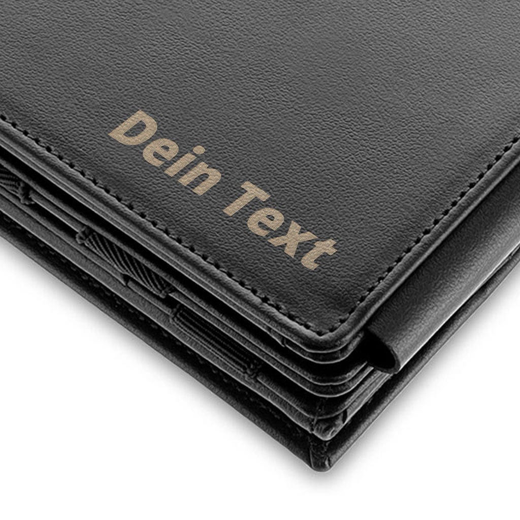 We use cutting-edge laser embossing technology to engrave your desired name or initials into the surface of the leather. The engraving is positioned on the right bottom corner of the wallet as you can see on the picture. In order to add your name or initials simply use the dropdown menu above the “Add to Cart” button to choose the respective option to add your name or initials. Then enter your desired name or initials in the field below. You can add a maximum of 25 signs including white space.