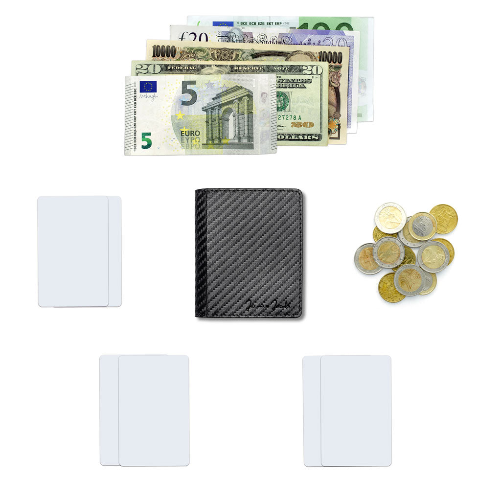 - 5 card slots: Room for at least 5 cards - if used with 2 cards in the card slots inside and 3 cards in the card slot on the outside, room for a maximum of 11 cards