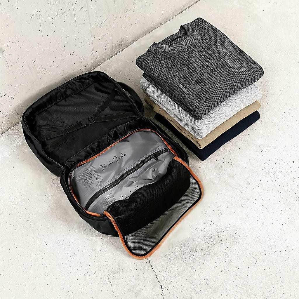 Tailored specifically for the Jaimie Jacobs backpack, it fits perfectly in the main compartment. At the same time, the vacuum bag also fits seamlessly into most suitcases and other bags.